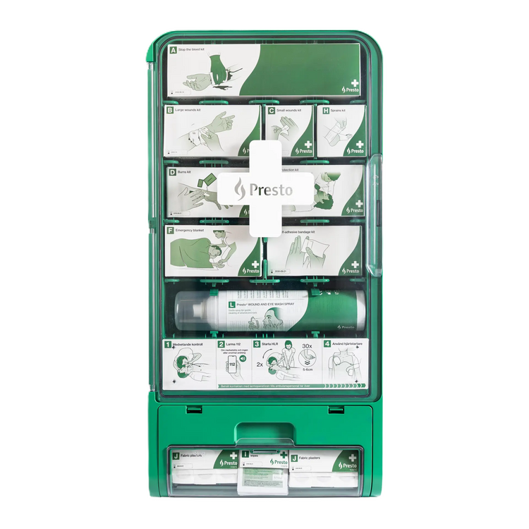 Unsere Erste-Hilfe-Stationen sind zuverlässig und einfach zu benutzen. Die Stationen eignenen sich ideal für Arbeitsplätze, öffentliche Einrichtungen und die Lebensmittelindustrie.
